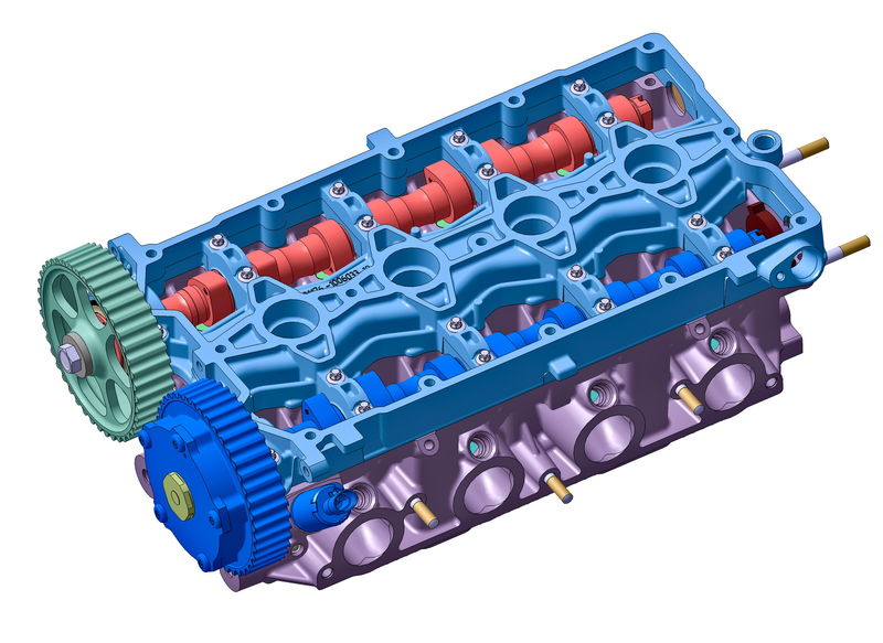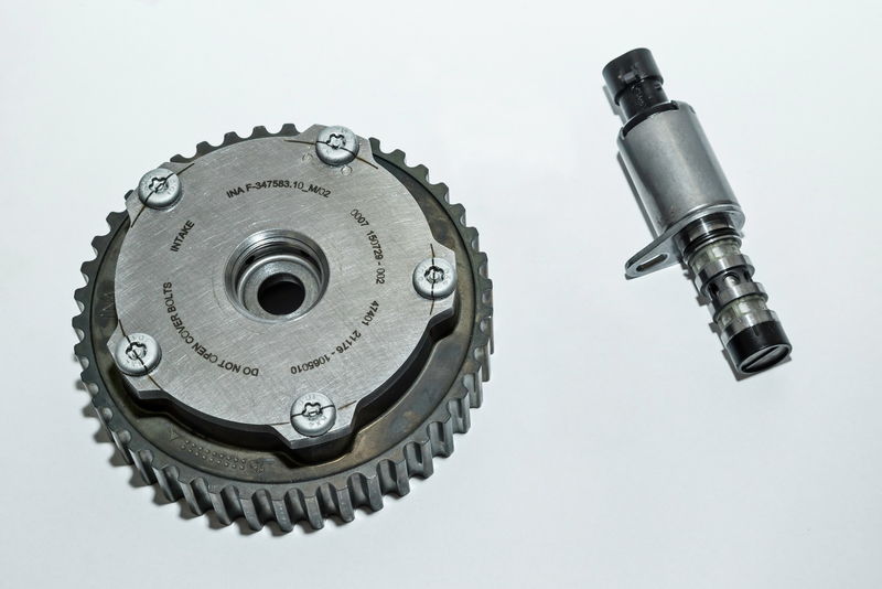 Распределительные валы южнокорейского производства поставляет компания Toyota Tsusho. Они полые внутри, а кулачки изготовлены методом порошковой металлургии. Такой распределительный вал существенно легче прежнего, чугунного. Клапаны фирмы Mahle тоже облегченные, со стержнями диаметром 5 мм. Сухари, направляющие, маслосъемные колпачки — соответствующего размера. Цель облегчения — снижение инерционности системы, что дает возможность с большим ускорением открывать клапан.