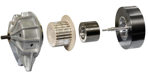 Механическая KERS по эффективности вдвое превосходит традиционную электромеханическую — она усваивает до 70% энергии торможения против 35%. В серийных гибридах кинетическая энергия превращается в электрическую, а затем — обратно. Маховику же не требуется конвертировать полученные джоули. С другой стороны, при необходимости маховик можно подключить к стартер-генератору. Такой вариант KERS мощностью 60 кВт и массой 27 кг был создан Хилтоном и Кроссом в кооперации с итальянской Magneti-Marelli. Излишки энергии запасаются в литий-ионной батарее. Естественно, при этом существенно падает КПД, зато время хранения не ограничивается затуханием вращения маховика. В стальную поверхность деталей интегрирован магнитный неодимовый порошок и более крупные упорядоченные постоянные магниты, скрепленные прочнейшей эпоксидной смолой. Вращение маховика вызывает разнонаправленное вращение внешнего ротора муфты, соединенного с тороидальным вариатором Torotrak с передаточным числом от 10:1 до 1:1. Для достижения максимальной эффективности бесконтактного зацепления стенку корпуса маховика пришлось сделать чрезвычайно тонкой — зазор между двумя вращающимися элементами муфты составляет всего 2 мм. По заявлению разработчиков, КПД магнитной передачи необычайно высок — 99,9%.