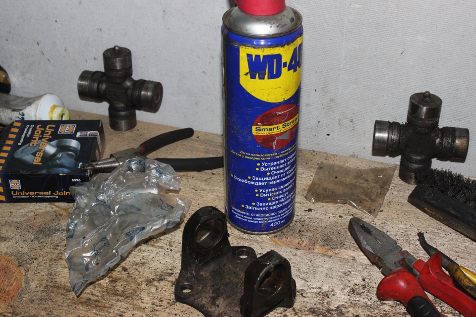 Стоит упомянуть, что полноприводные машины предусматривают наличие не одного карданного вала, а двух. Условно их можно поделить на передний и задний, так как оба они получают крутящий момент от раздаточной коробки и один вращает передний мост, а второй задний. Оба они практически идентичны, основное отличие в том, что передний короче, так что и описания ремонта карданного вала подходят для обоих. При всей качественности производства чинить, что передний, что задний карданный вaл приходится одинаково часто, особенно если автомобиль очень часто передвигается по бездорожью. Именно там он получает максимальные нагрузки.Карданные валы в сборе отбалансированы на заводе-изготовителе, поэтому при последующей сборке необходимо сохранить прежнее взаиморасположение деталей, иначе при движении автомобиля могут возникнуть вибрации.Меняя крестовины, я вспомнил, что у меня периодически спрашивают подробности замены. Не все знают, как это делается и какие могут быть подводные камни. Поэтому я решил сделать этакий "пост с элементами руководства". Во-первых, возможно он поможет какому-то новичку. Во-вторых — замена крестовин производится не так уж часто, я и сам могу что-то подзабыть, а тут памятка под рукой. В-третьих — наверняка кто-то из читающих меня людей подметит неточности, а может даже — и откровенные ошибки, что, опять же, на пользу общему делу. Поэтому — приступим уже к делу.![]()