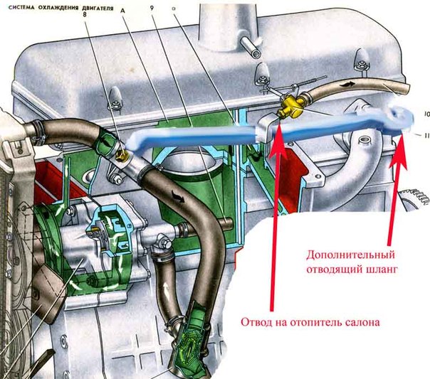 Схема система охлаждения двигателя УЗАМ (УМЗ) на автомобиле Москвич (АЗЛК и ИЖ) 412