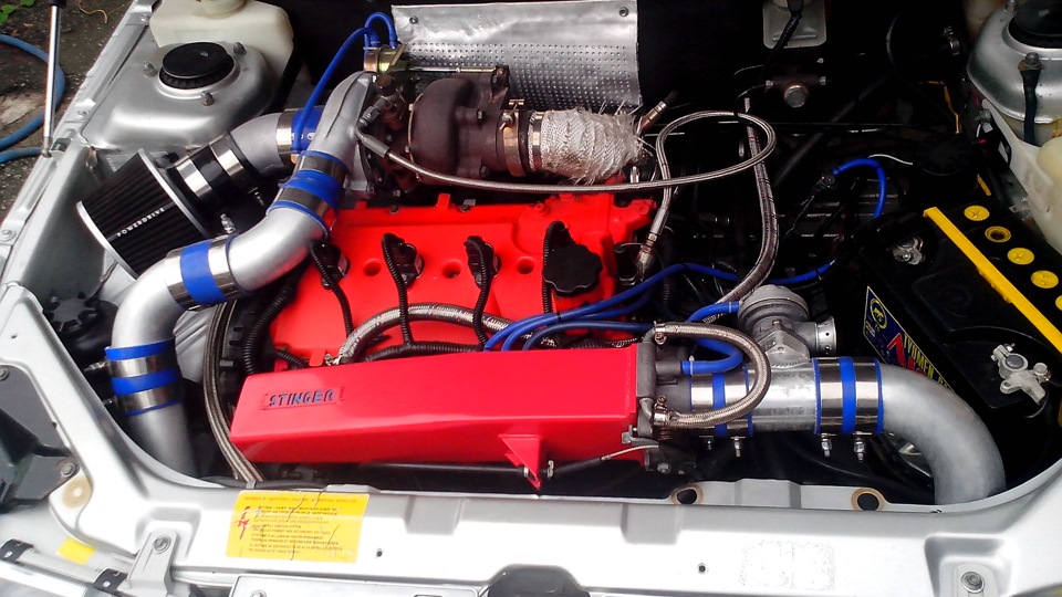 По аналогии с компрессором, меняем поршневую на кованую со снижением СЖ до 9, валы Нуждин 8.7 или 8.85, ставим небольшую турбину вроде Garrett 17, турбо коллектор, насос вальбро на 450 литров/час, форсунки БОШ 431 с производительностью 360сс , переходим на ДАД с ДТВ, блоу офф, выхлоп на 51 трубе, интеркуллер и расходники. Примерно 150+ л.с. получим, но тоже самое на приора блоке даст больший прирост. Делать или нет решать вам.