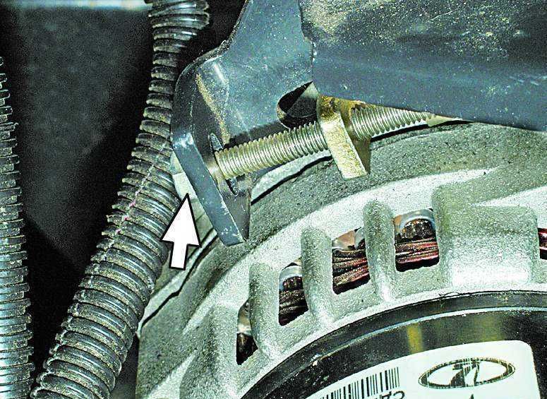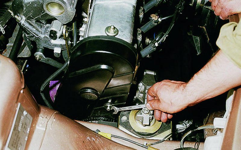 3. Ослабляем натяжитель ремня генератора с помощью ключа на 13. Снимаем ремень.