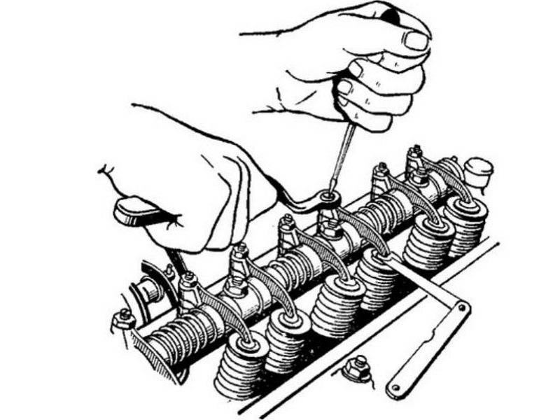 Регулировка клапанов ЮМЗ 6 Техническое обслуживание ГРМ трактора ЮМЗ заключается в периодическом осмотре наружных деталей, проверке и установке требуемых тепловых зазоров между бойками коромысел и стержнями клапанов, регулировк...